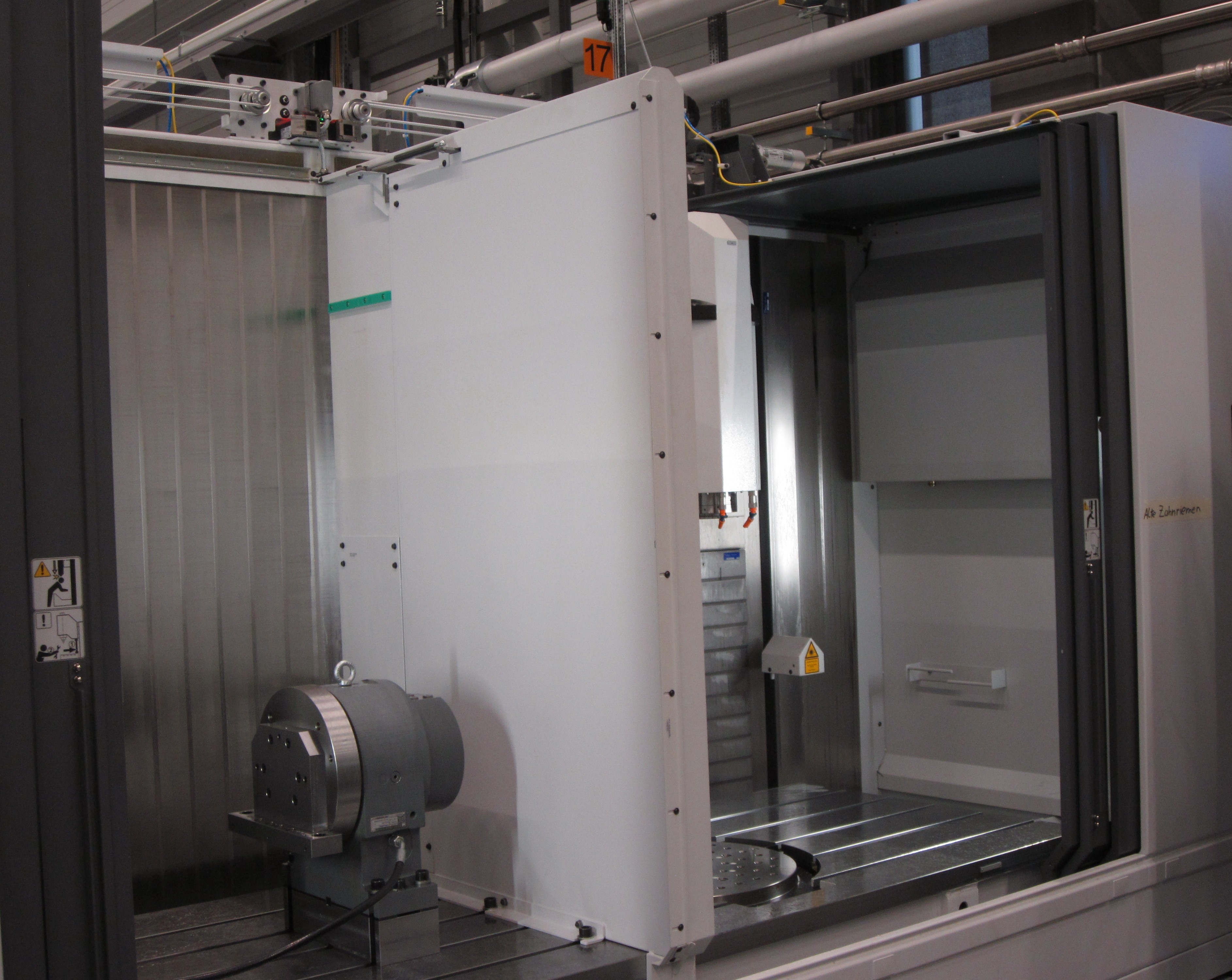 Powerful long-bed production in pendulum mode with standard rotary table basic device. Work areas of longbed machining centers larger than X=2,000 mm can be divided into two areas by a central splash guard. NC control is mobile for ergonomical setting mode.