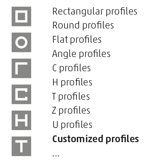 - Profile sizes up to 95mm x 95mm to 150mm x 150mm